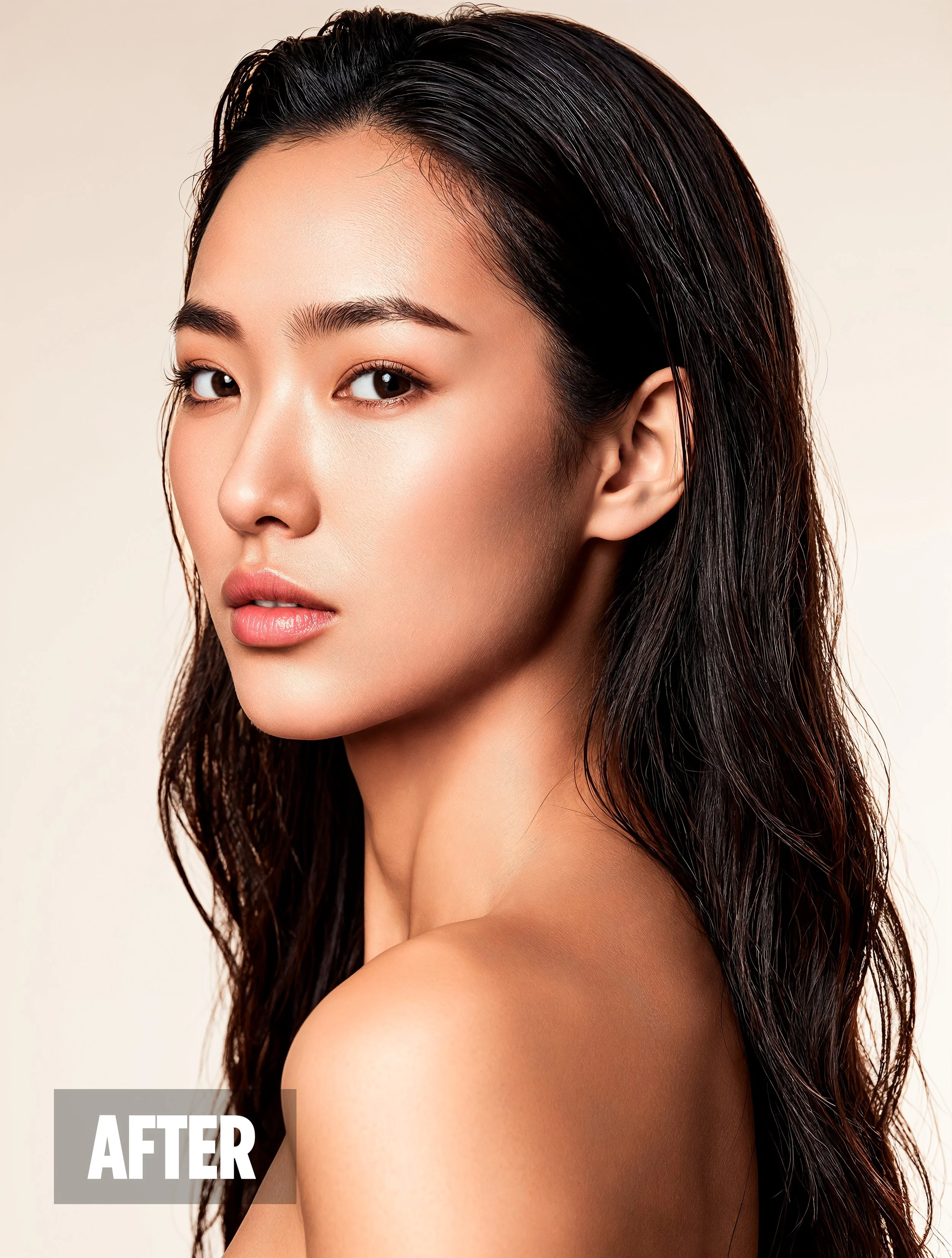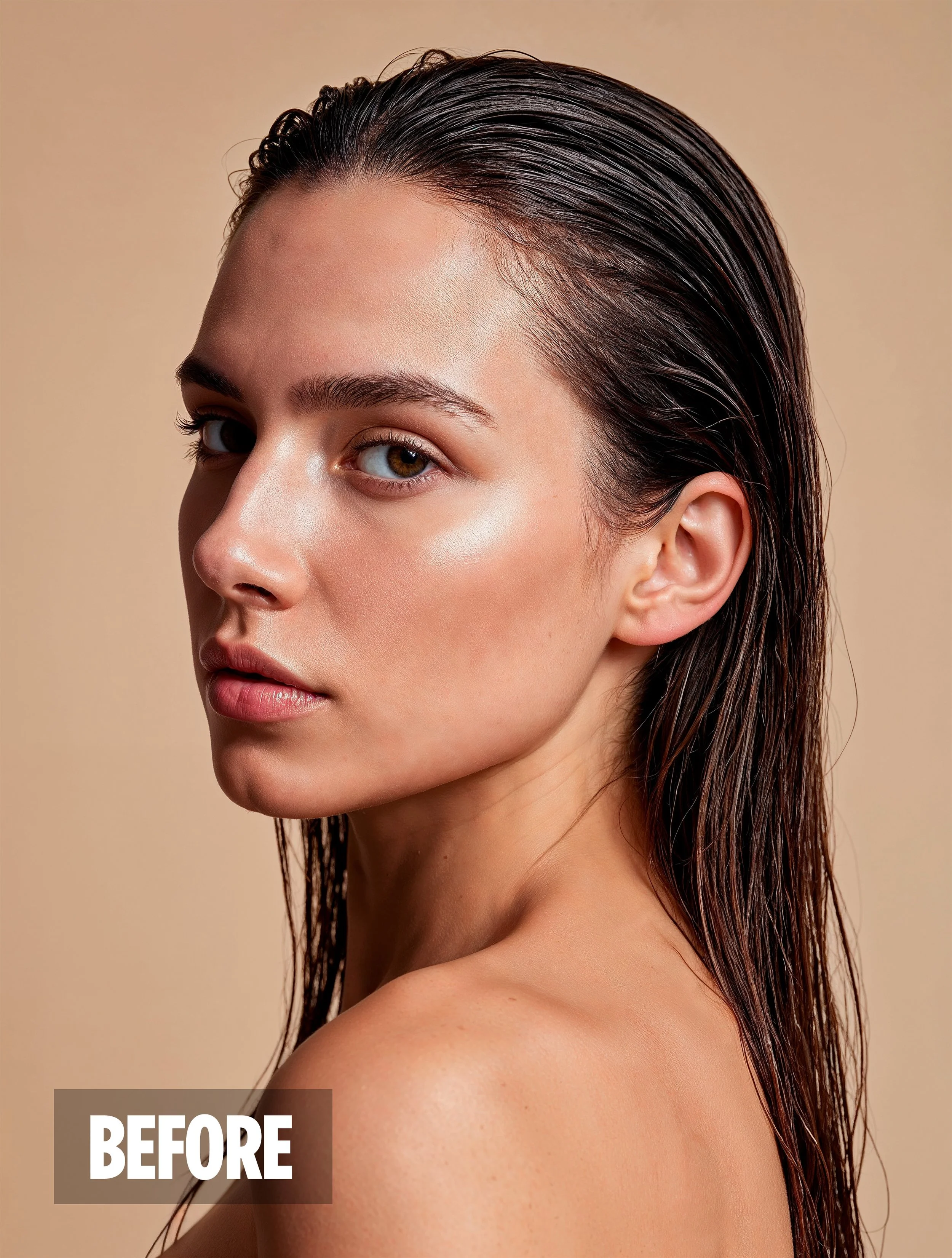 So Mystic AI served as my virtual photo studio, allowing me to generate hyper-realistic beauty portraits online. The production process completely bypassed traditional photography’s logistical hurdles. No need for models, makeup artists, stylists, lighting setups, a physical camera, a studio or food catering – just an infinite digital canvas powered by AI.The headshots Mystic AI generated were rich in detail, from luminous skin textures to intricate highlights on the wet hair. This kind of photography normally takes hours in the studio and involves dozens of people. And however, as impressive as these images were, they needed that professional finishing touch to transform them into flawless, high-end beauty shots which we know from the shampoo advertisings.