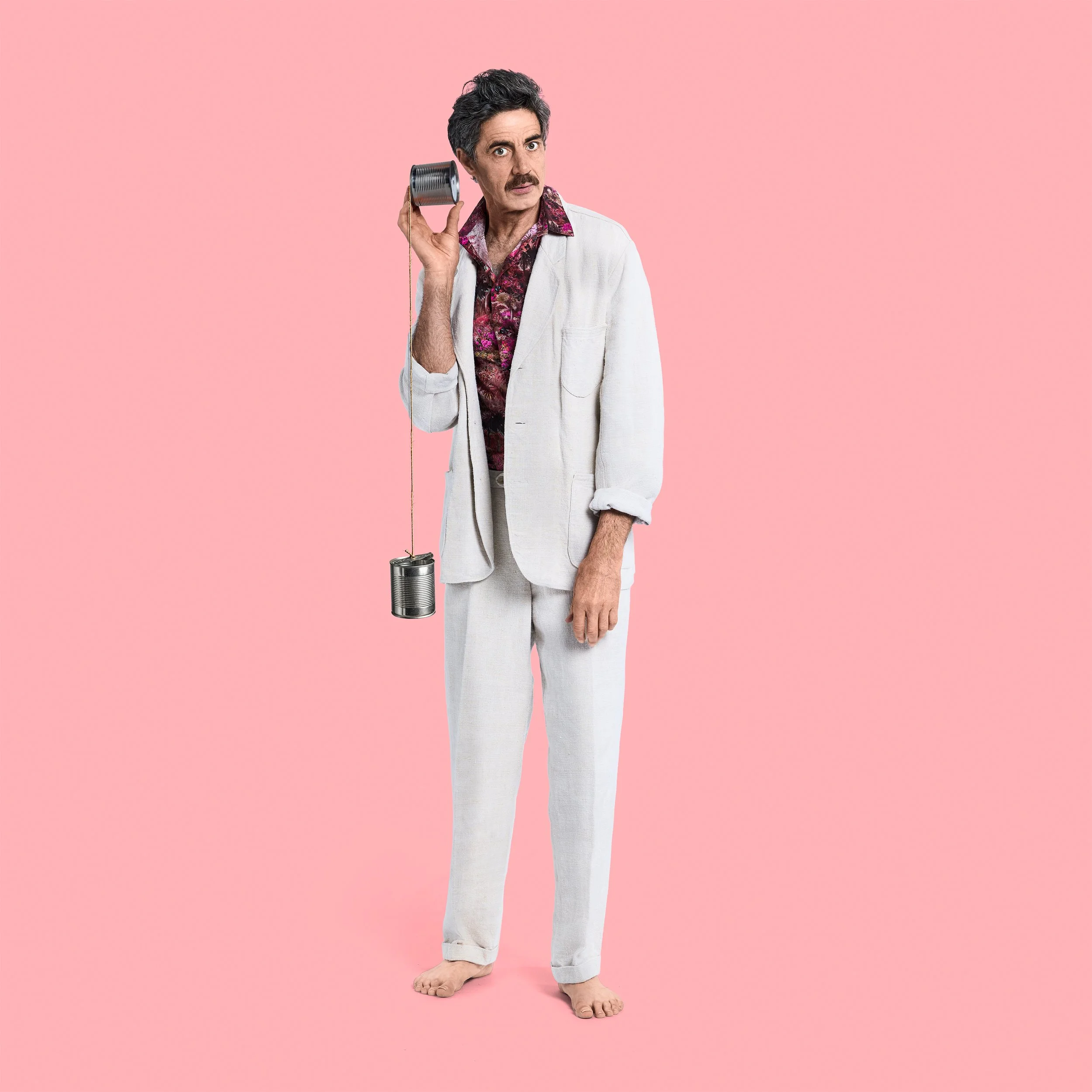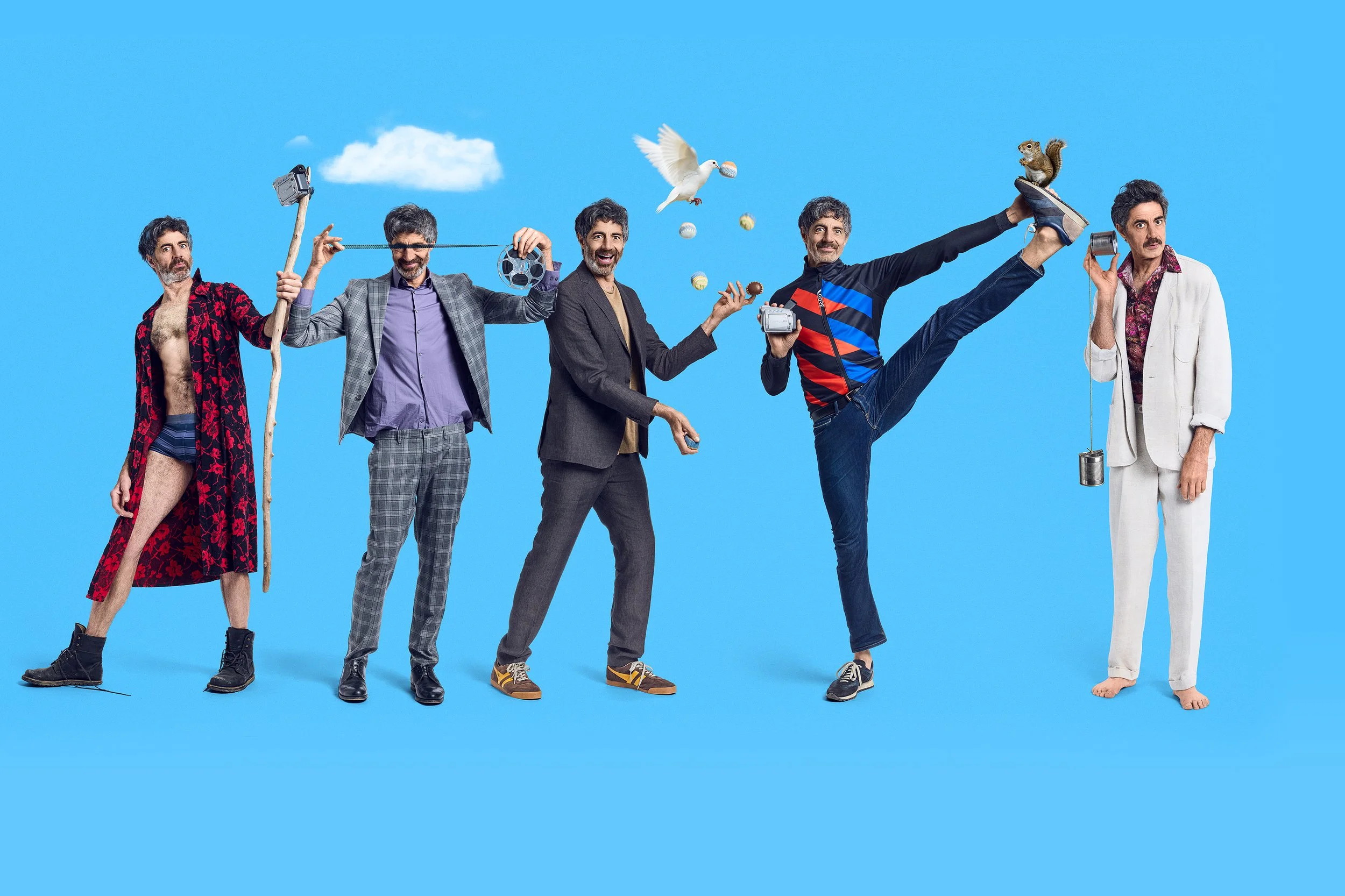 I instructed both of them to create some new images where he could literally act out his »inner Jacques Tati« with silly poses and hilarious costumes and weird props in front of a neutral white background.