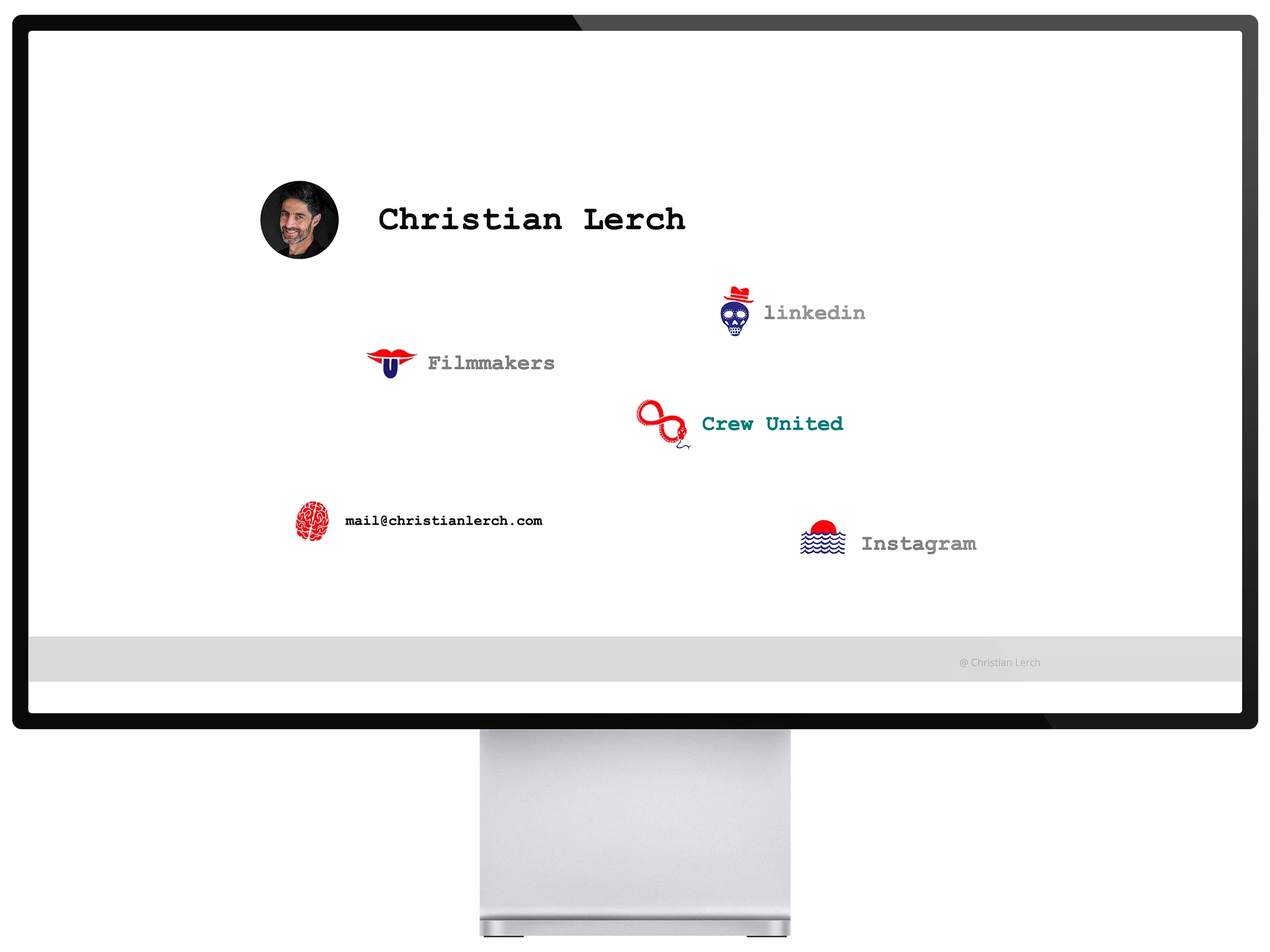 In this case I had to create a complete new website for actor, writer and director Christian Lerch. His original website was just a bunch of loose icons that were linked to his social media accounts.